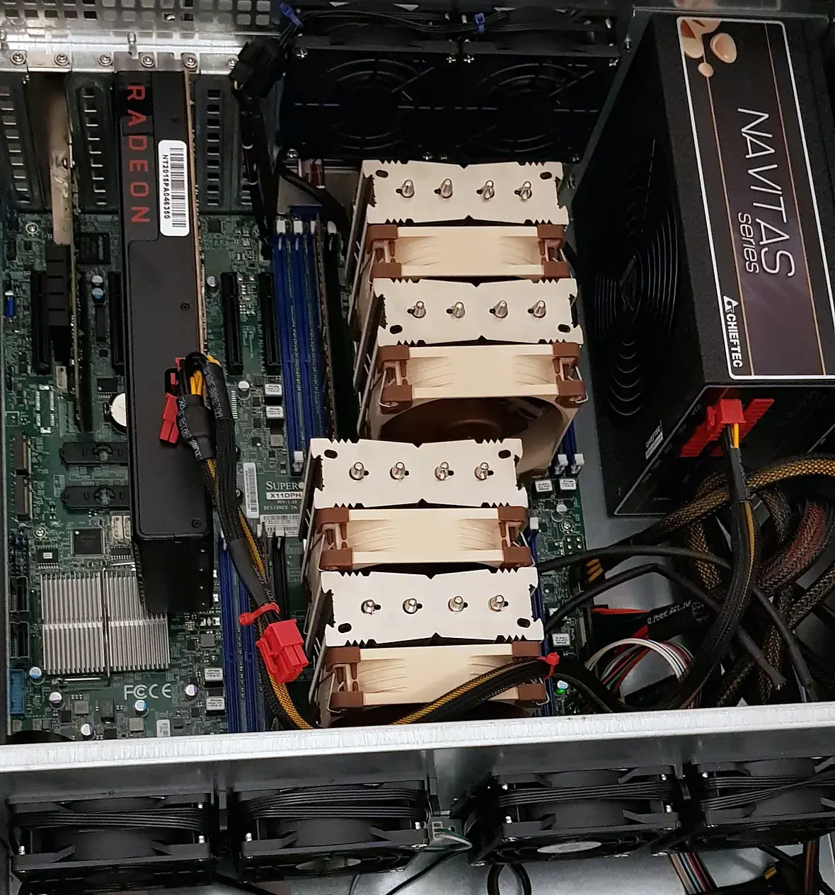 машина 2 Серверная плата SuperMicro X11DPH-I-O 2 x Intel Xeon QL1F 8176 ES 8180 CPU platinum1.8GHz 28 core 56 thread CPU 4 x SAMSUNG M393A2G40DB0-CPB0Q 16GB DDR4 PC4-22133P SERVER MEMORY Видеокарта AMD RADEON RX 580 4GB Ssd 240 gb Hdd 1tb монитор full-hd стоимость 1000 руб за 24 часа доступа через TeamViewer для организаций возможна оплата б/н (+10%) машина 3 Серверная плата SuperMicro X11DPH-I-O 2 x Intel Xeon QL1F 8176 ES 8180 CPU platinum1.8GHz 28 core 56 thread CPU 4 x SAMSUNG M393A2G40DB0-CPB0Q 16GB DDR4 PC4-22133P SERVER MEMORY Видеокарта AMD RADEON RX 580 4GB Ssd 240 gb Hdd 1tb монитор full-hd стоимость 1000 руб за 24 часа доступа через TeamViewer для организаций возможна оплата б/н (+10%) софт: Windows 10 pro Blender DaVinci Resolve *покупка лицензий иного софта для вашего проекта обсуждается *скидки за объем обсуждаются ***также, готов рассмотреть вопрос продажи всего кластера: - 3 сервера (описание выше)- стойка 16u,3 полки, блок розеток - 3 x кабеля Cisco Genuine SFP-H10GB-CU3M SFP+ 3M - 3 x MNPA19-XTR 10GB MELLANOX CONNECTX-2 PCI-E 10G SFP+ - 1 x Eltex Ethernet-коммутатор MES2428 стоимость: 580 000 руб. прошу обращаться только по делу, спасибо!