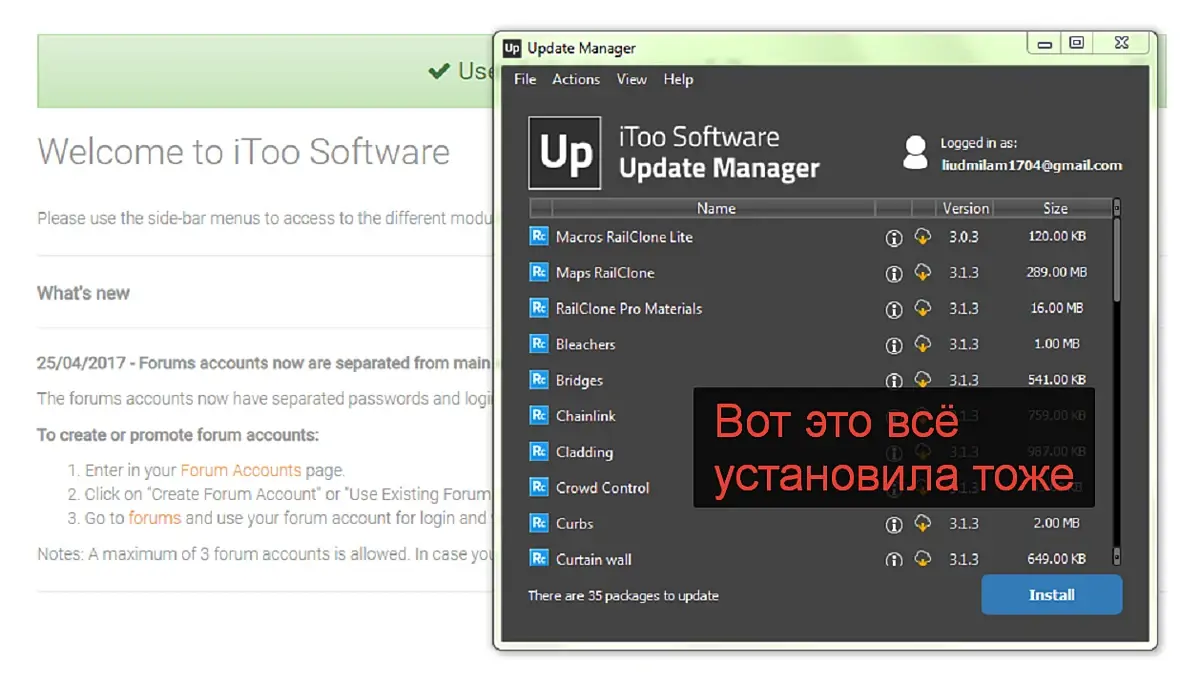 В 2020-м кнопка RailClone на панели не работает. Нажимаю - и ничего не происходит. Перед установкой установщик предупреждал, что "на компе найдена старая версия PRO, хотите даунгрейдиться до Лайт?" Я нажала "да", потом ещё зарегилась на itoo, скачала все предложенные дополнения и всё - "успешная установка".