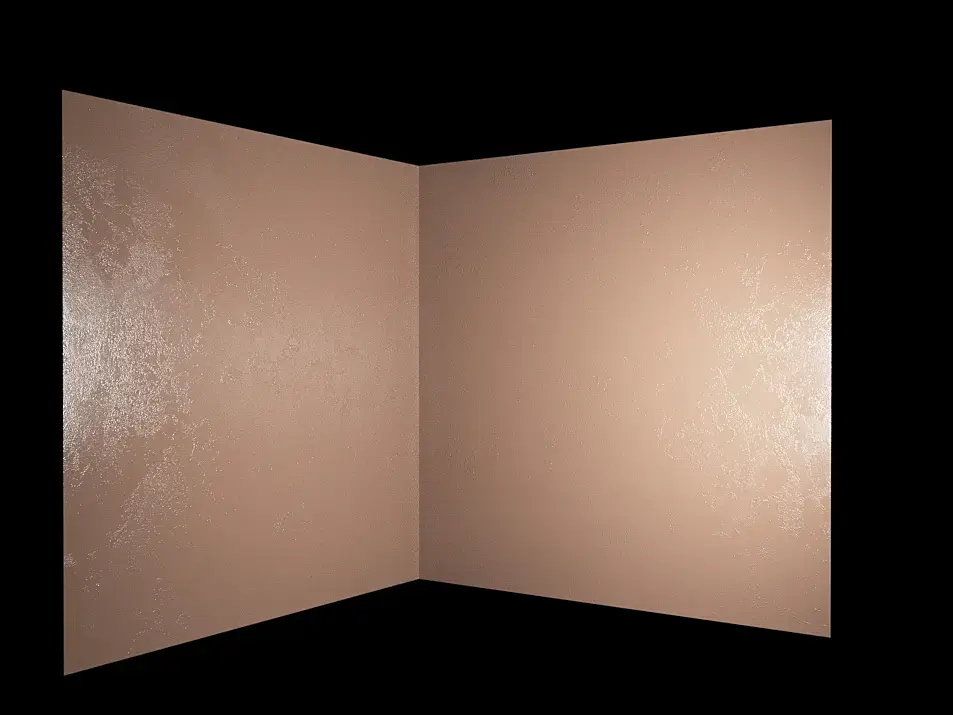 Не в прямом смысле стерео-варио конечно. Но я думал подобный эффект смены одного изображения на другое взависимости от ракурса применить для замены одной дифузной карты на другую. Сам материал штукатурки не знаю, что то типа матого шелка. Наверное сей от нанесения зависит. Думаю одни пятна наносят в одном направлении другие в другом, поэтом у смотрятся то светлее то темнее