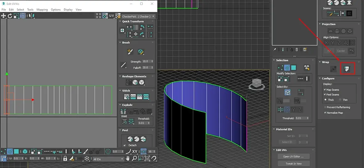 4. Выбираю ребра которые надо сшить, что бы текстура не обрывалась