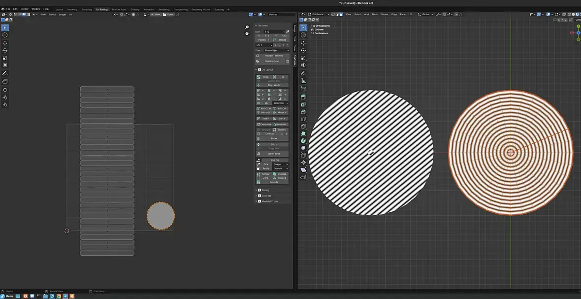 Если уже получилось, то хорошо, но, я думаю, что лучше такой объект делать изначально так, чтобы развертка была нужной. Как вариант используя loft или sweep. В качестве пути - окружность, объект - линия. Вот у меня на скриншоте свипом. Ну и да, не забыть отметить галку generate mapping coordinates