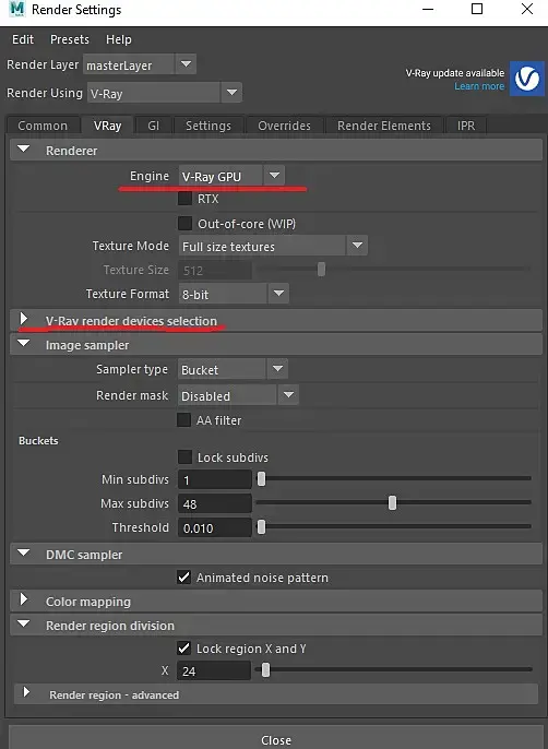 У вас такие настройки есть?) переключите на Vray GPU а в следующей подчеркнутой вкладке выделите свои видюшки) по надобности вон еще RTX можно врубить но сначала без него чекните