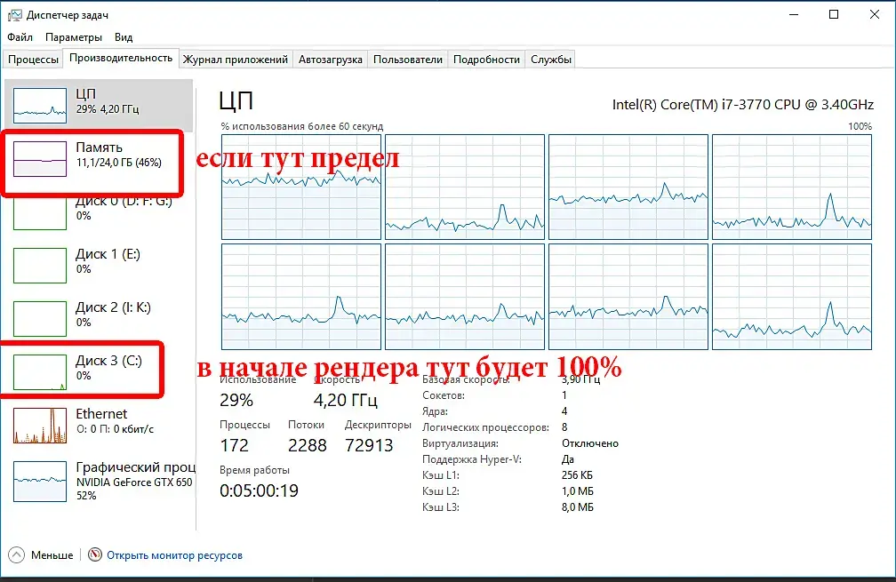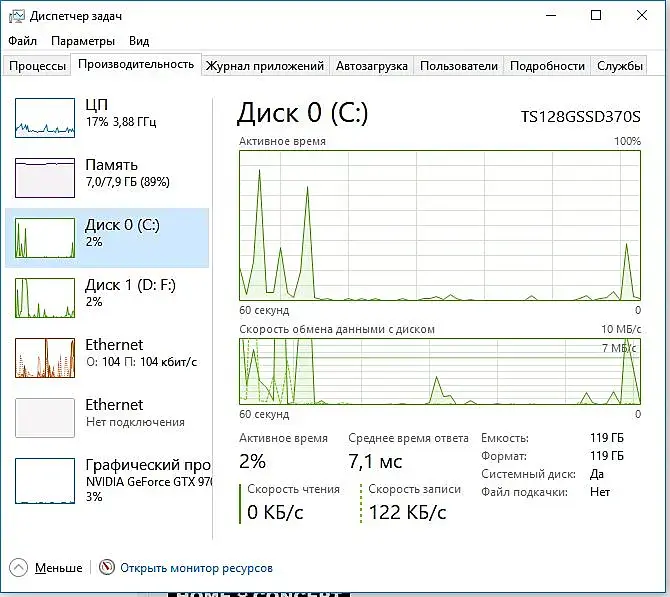это время как раз заполнение оперативной памяти