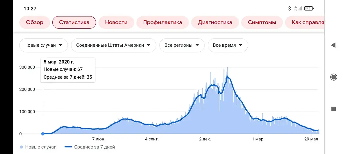 У нас в Молдове тоже произошел перелом, причем покруче чем в Штатах. И это при 10-ти процентах вакцинации. С чем это связано, никто не знает. Может, еще индийский штамм не завезли. А может, коллективный иммунитет получен за счет большого количества уже переболевших.
