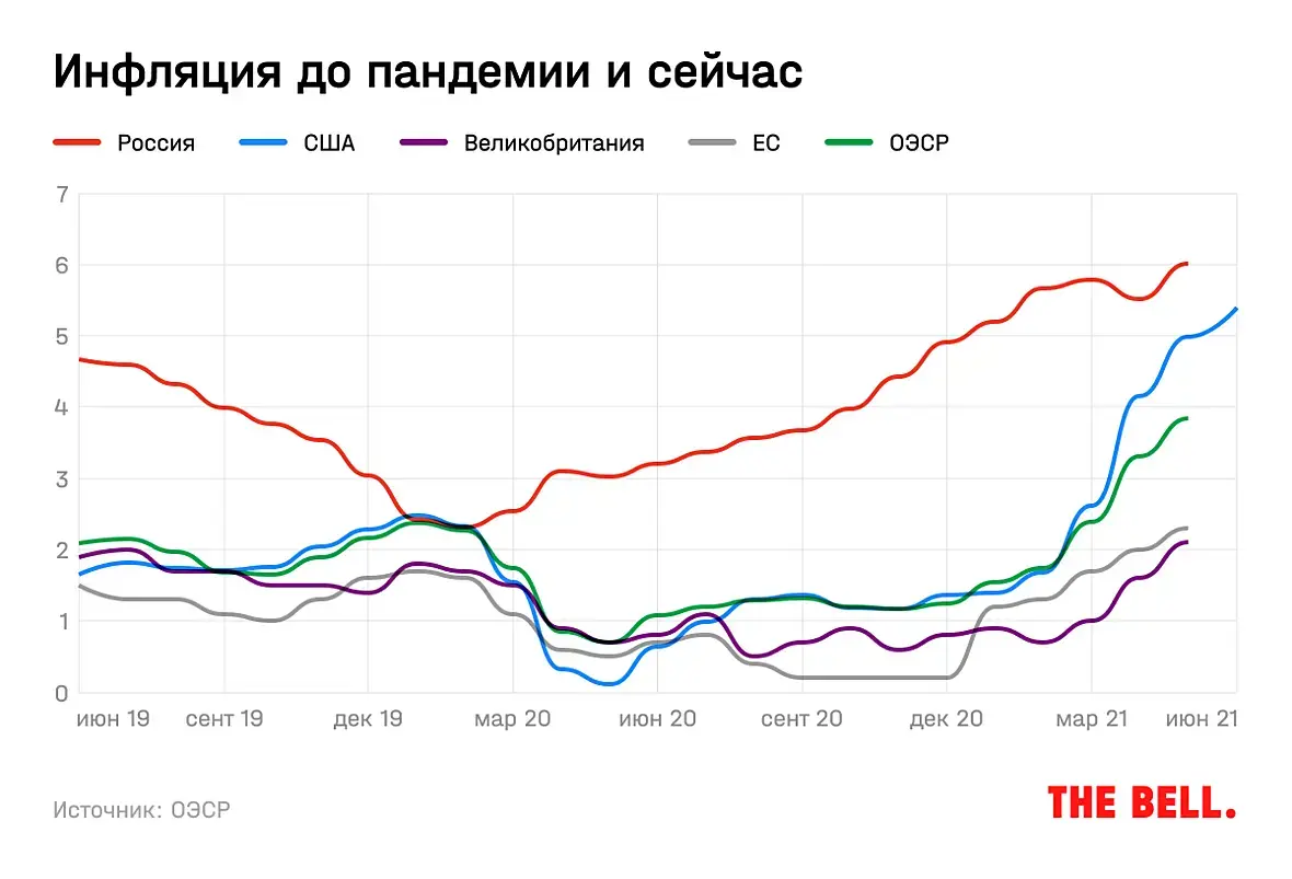 думаю про печатный станок слышали? их по сути 2, в ЕС и в США, с нашим не сравнить, нет у нас таких возможностей. И по итогу они получили хорошую такую инфляцию.