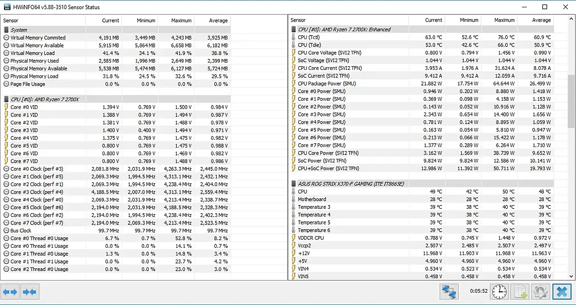 Подскажи пожалуйста, на борту имеется ryzen 7 2700x в стоке (3.7 мг), без разгона,все стоит на авто,но смущает одна деталь. Вольтаж cpu автоматически выставлен 1.212 v, но при этом в мониторинге биоса вольтаж скачет примерно от 1.235 до 1.42. Нормально ли это? Скачки происходят с периодичностью примерно в 5 секунд. Материнская плата Asus rog strix x370-f gaming
