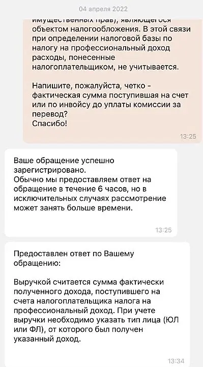 Ну и очередной пруф от поддержки "мой налог" для сомневающихся:
