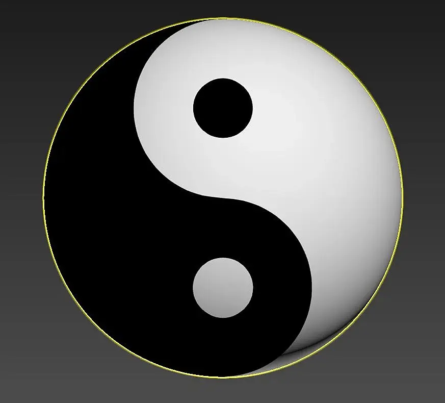 пересечение 2-х цилиндров и сферы создаст нужную вам линию инь янь в объеме