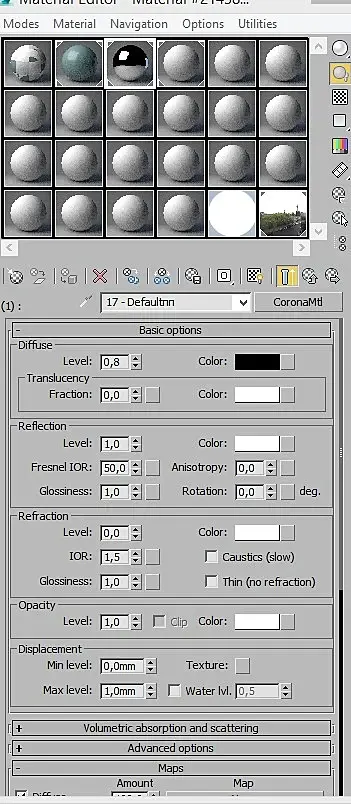 Настройки для зеркала - диффуз левел в 0, иор 999.