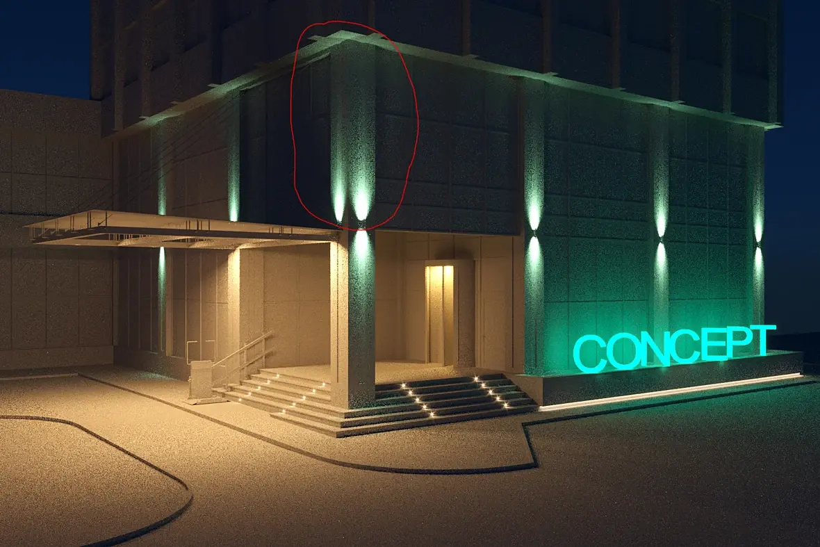 И так. Я посмотрел видос, который вы скидывали, немного другая ситуация конечно, автор в данном видео рассматривает вариант освещения интерьера, а не экстерьера, использует для просчета вторичного отскока UHD cache, что собственно правильно для интерьера,про экстерьер я там ничего не увидел( многие считают что для экстерьера лучше использовать Patch tracing.), ну да ладно, я использовал UHD. Из всех манипуляций, который делает автор в этом видео, это выставляет дефолтные настройки короны и показывает как отобразить на рендере неправильно настроенные альбедо материалов. ( для меня это было не новостью впрочем). Воспользовался советом,выставил все настройки на дефолтные, отрендерил сцену, неправильно настроены оказались бутоны кустов, и светящиеся буквы на клумбе, при этом буквы шум не издают как раз...