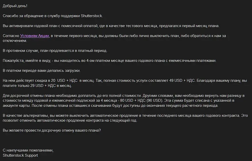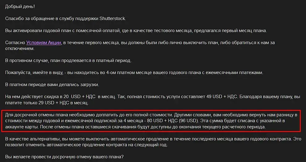 поделюсь своей ситуацией с народом. в прошлом году Shutterstock соблазнил меня халявой, и я как лошара повелся! суть акции такова, месяц дают возможность бесплатно скачать 10 изображений, а потом взымают денежку за подписку. на первый взгляд вроде все стандартно, а вот хрен там! прошел месяц и момент перехода на платную основу проворонил, и в какой то момент сняли 3000р. ладно подумал я, сам виноват и поставил вот такую галку в профиле, и забил. обычно это автоматом отклюает все подписки, как бывает на подобных сервисах с подпиской.