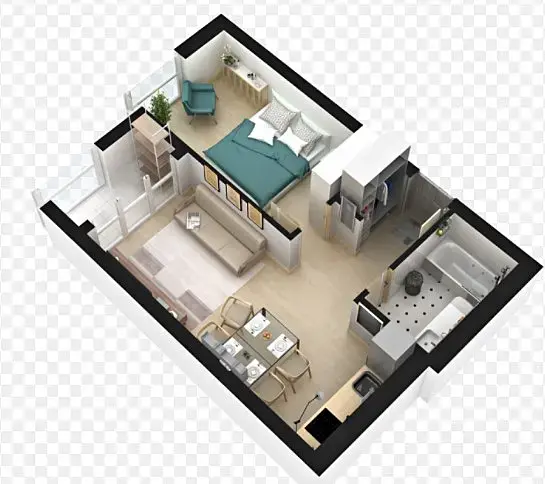 Добрый день! Подскажите, сколько можно попросить за разработку вида сверху квартиры в перспективе, что то подобное, как на картинке?