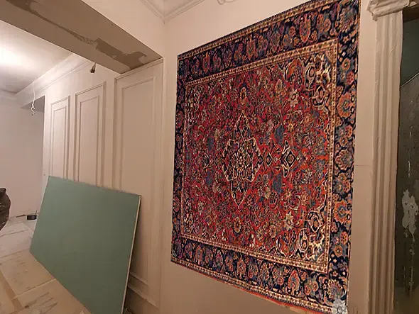 А если серьезно, то сделайте широкую 4-ую рамку (по габаритам ковра) с сохранением расстояния между рамками. Она не будет смотреться оторванной от остальных 3-х.
