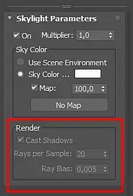 Если делаю новую сцену, ставлю бокс и добавляю Skylight, то у него галка доступна. Пробовал в старой сцене удалять и ставить заново Skylight, включать/выключать, менять туда-обратно рендер. Без толку, не доступна CastShadow и всё.