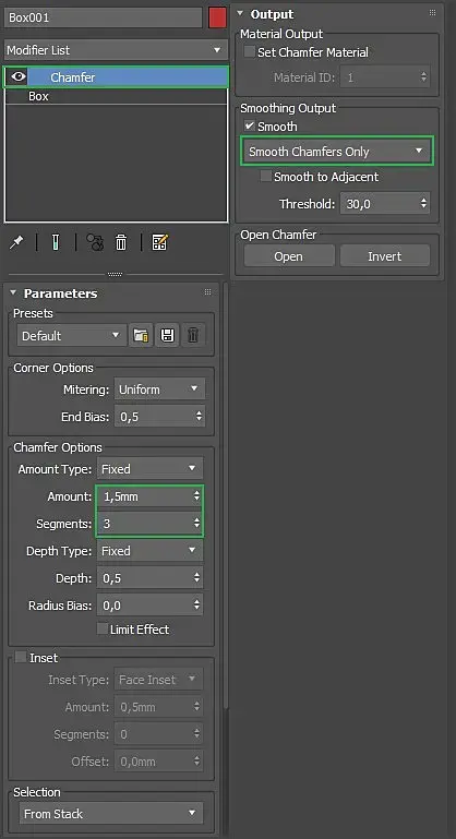 Можно сохранить!) Сверху у чамфера в параметрах где "Presets". Значек дискетки нажимаете, предварительно сделав настройки такие, как вам нужно. Вбиваете любое имя и жмете галку "Make default". Все!) Теперь всегда такие настройки будут по умолчанию, даже после закрытия макса)