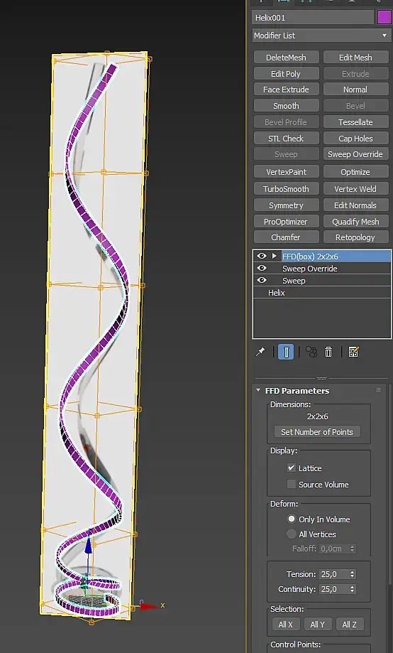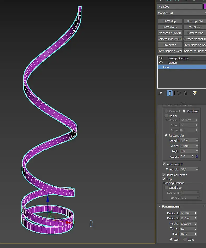 У меня постоянно получается не то что нужно.. Помогите понять хотя бы как сделать правильно топологию спирали. (Использовал Helix, Но он не помог.. еслиб у него было больше настроек возможно сделал без проблем. )