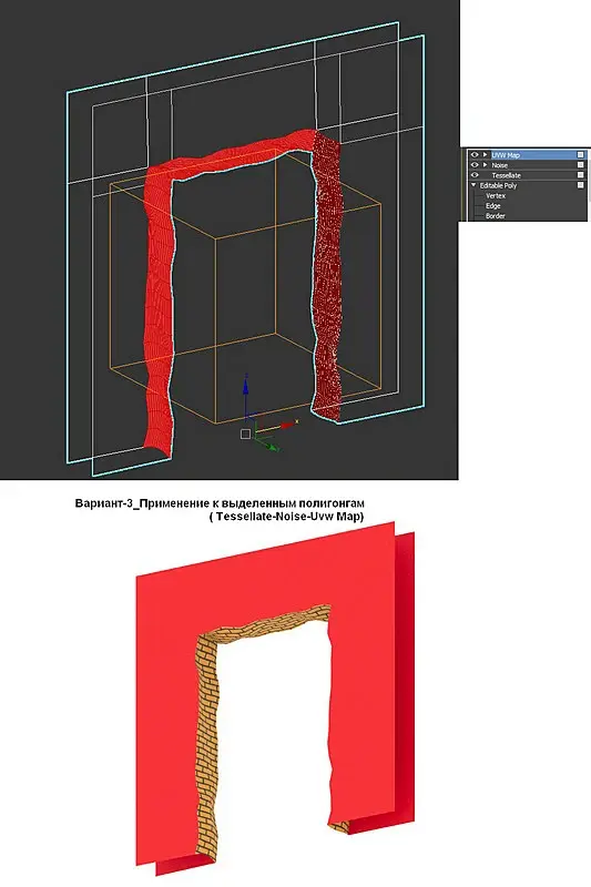если стена ровная так сделай как сказал Бяка , а если даже и не ровная то можно её и деформировать различными инструментами в максе , что касается Zbrush то заморочится стоит ,но не по кирпичам там делать стену, а хотя бы отдельными блоками (что можно сделать и в максе ) , и UWV Mapping тоже нужен , подгонять геометрию (стену) под разрушенную часть не отдельными кирпичиками а тем же самым блоком , повторяющим облом арочной стены