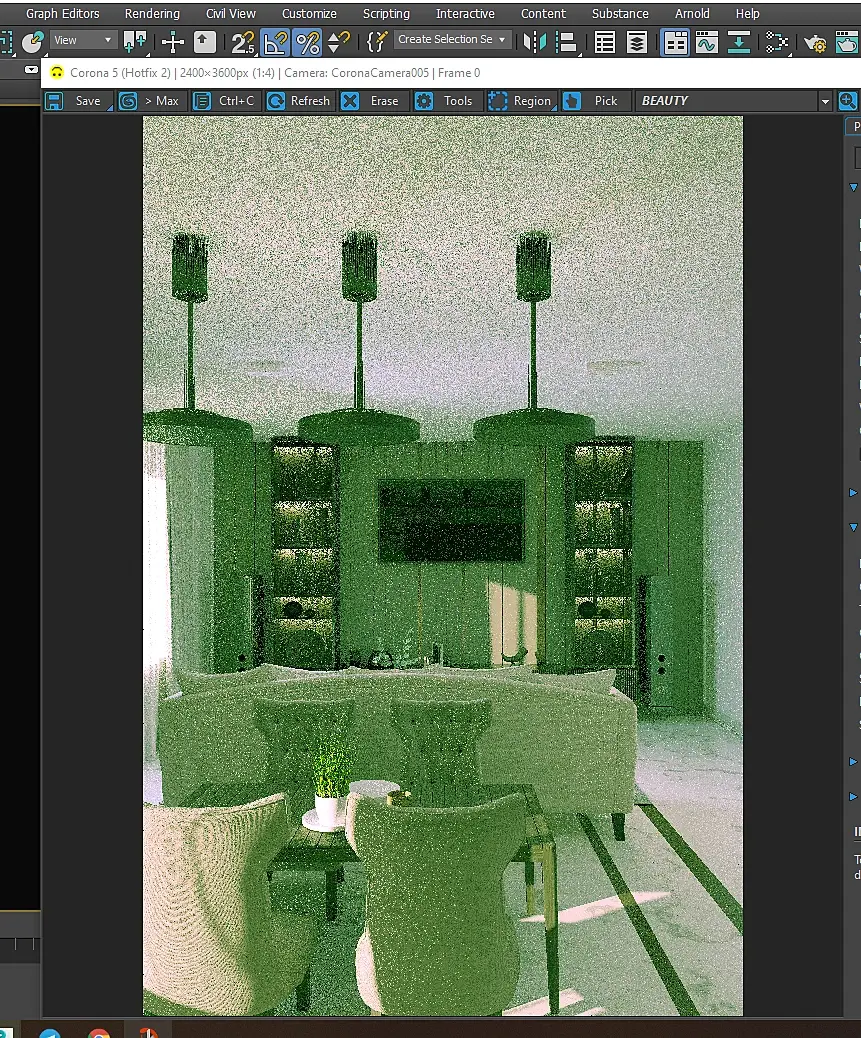 Ой, посмотрел внимательно - это, скорее всего, вы shadow color на зелёный поменяли, найдите где он там и на чёрный обратно смените. Я это по тому что пол белый, а тень на полу зелёная предположил.