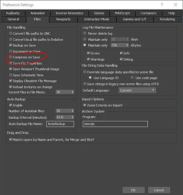 По умолчанию компрессия отключена. Я подозреваю, что при сохранении файла большая часть времени уходит не на запись файла на носитель, а на его формирование.