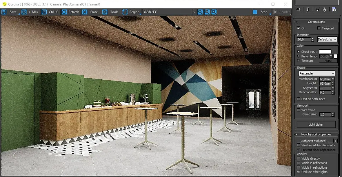 Осветил помещение восемью прямоугольниками. На стенах вот такие пятна. Других источников света в сцене нет. Пятна исчезают, если включить Occlude other lights (но появляются в виде черных прямоугольников), либо если скрыть из сцены потолок! Заменять геометрию (потолок) и материалы пробовал - не помогает. Совсем не понимаю в чем может быть дело((