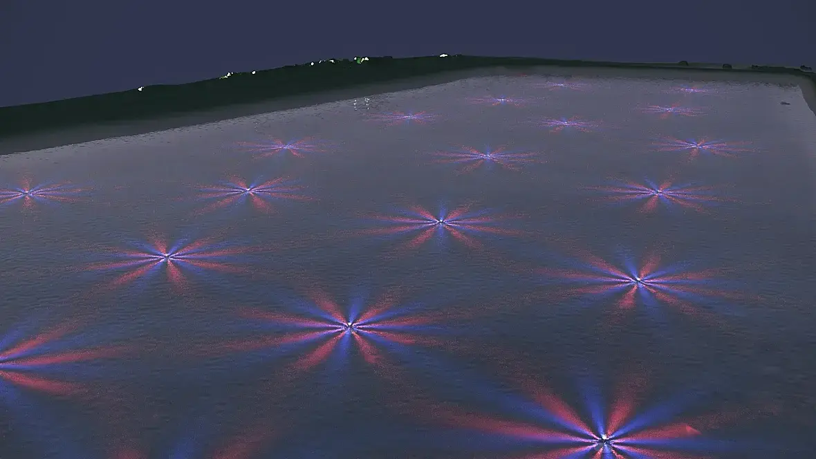 Нужно показать в ролике некий сценарий освещения, где стойки со светильниками загораются по очереди и к тому же меняют цвет (условно синий-розовый...). Светильники в стойке загораются тоже не разом, а ярусами или по спирали.