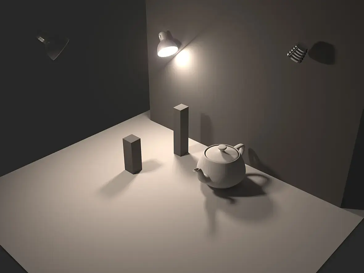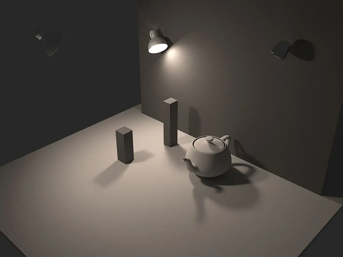 Станартный рендер со стандартным источником света. Чёткое начало тени и оно как градиент.