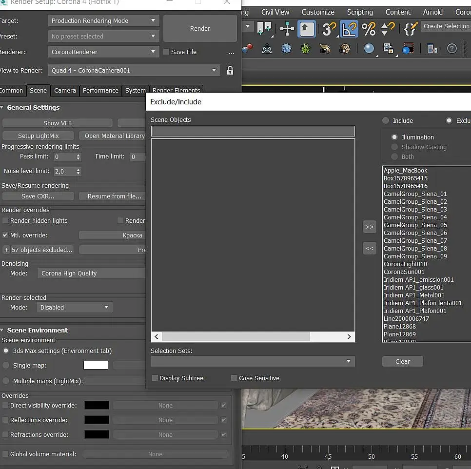 Добрый вечер. Испробовала уже всё, но ничего не помогает. Фон сделан CoronaLightMtl, тюль прозрачная, портал стоит. Ума не приложу, что ещё не так может быть. Впервые такая ситуация.