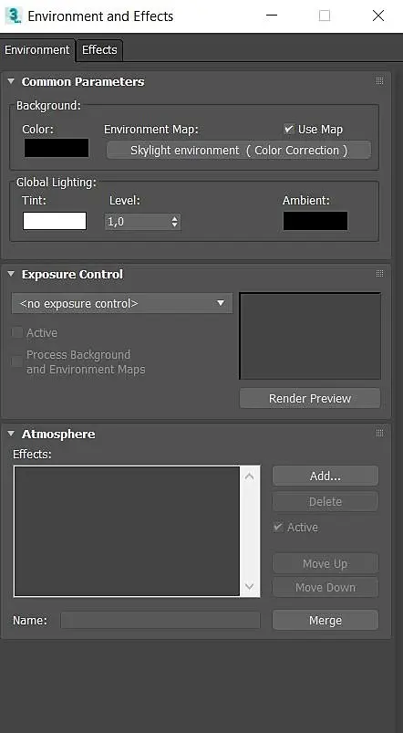 ...а дальше? Вы только настройки неба показали. Еще нужно увидеть, что там с солнцем и окном рендера.