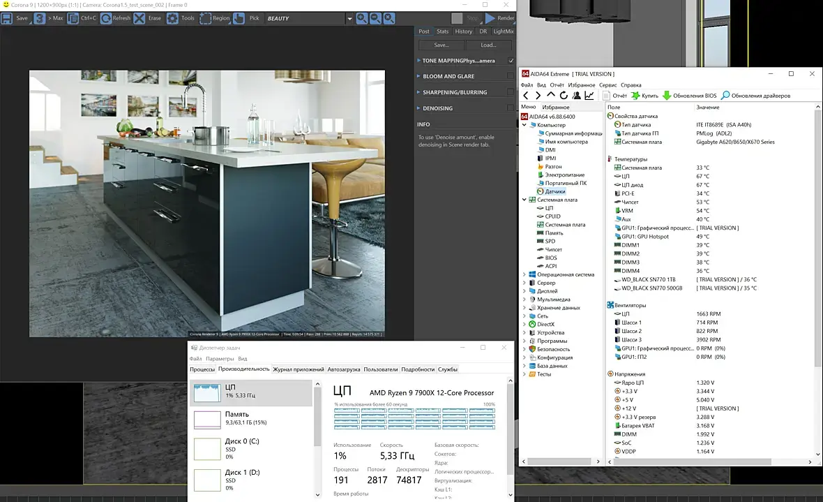 3DMax 2021 Corona 9.1 Ryzen5700x  память Kingston Fury 3200 ...1плашка на 32 ГБ кароче одноканал)))smiley-smile.gif