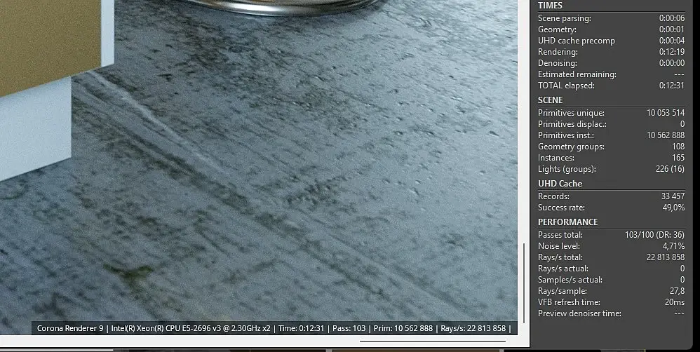 Для того чтобы точно оценить время рендера на вашем(их) процессоре(ах) - используйте подходящую версию сцены, версию Короны и версию Макса начиная с 2017го!