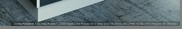 Max2017, Corona 3.1, Threads - 480. Пассов вышло больше, потому что ноды присылают по окончании ещё полсотни сверху.