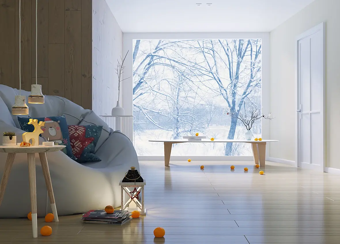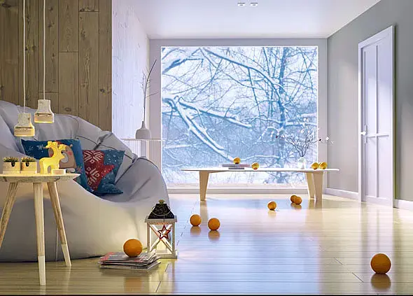 Я бы добавил окно, легкую тюль, радиатор или конвектор, точечный свет поправил т.к они вроде светят (ies есть) а сами светильники не светят, материал паркета подтянул и линию горизонта чуть опустил пониже.