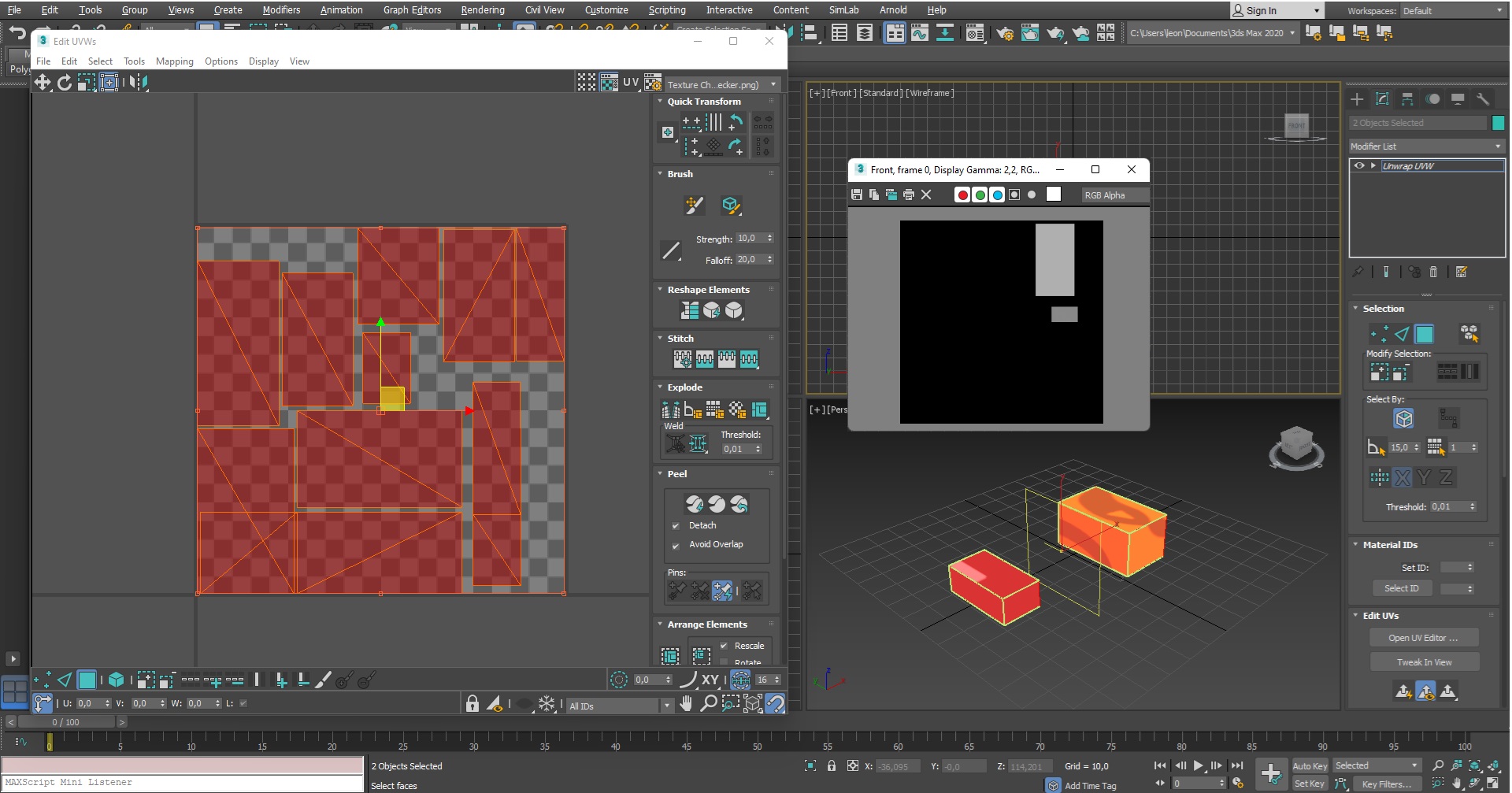на втором скрине применяю модификатор UV-Packer но в место красивых картинок появляются синие квадраты :(