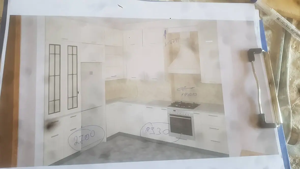 Извиняюсь за кривые почеркушки, я бы думала в какую-то такую сторону, если планировка позволяет. Ну только высокие модули в верхнем правом углу слишком уж глубокие получаются, рукой будет сложно достать. Либо зашить за ними, чтобы фасады модулей были вровень с кухней, либо "утопить" их относительно фасадов остальной части кухни. Конечно рабочей поверхности маловато и цикл нарушен, но плюсы у такой планировки тоже есть.