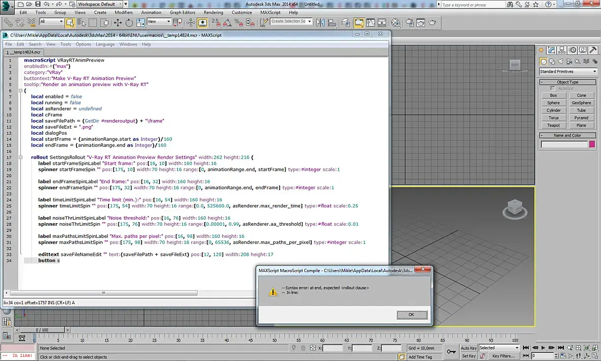 V-ray 3.4.01 ошибка при запуске в скрипте.