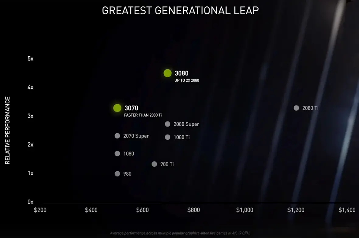 Да, им не выгодно её было показать на графике, она была бы за 2080Ti по цене и нет у нее весомого отрыва от 3080. Это "проф" карта, +20% CUDA от 3080, фишка которой 24 Гб памяти за $1499.