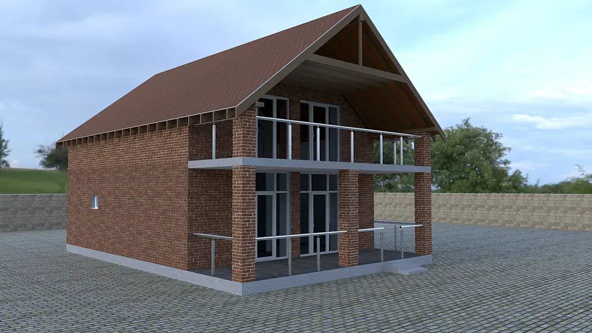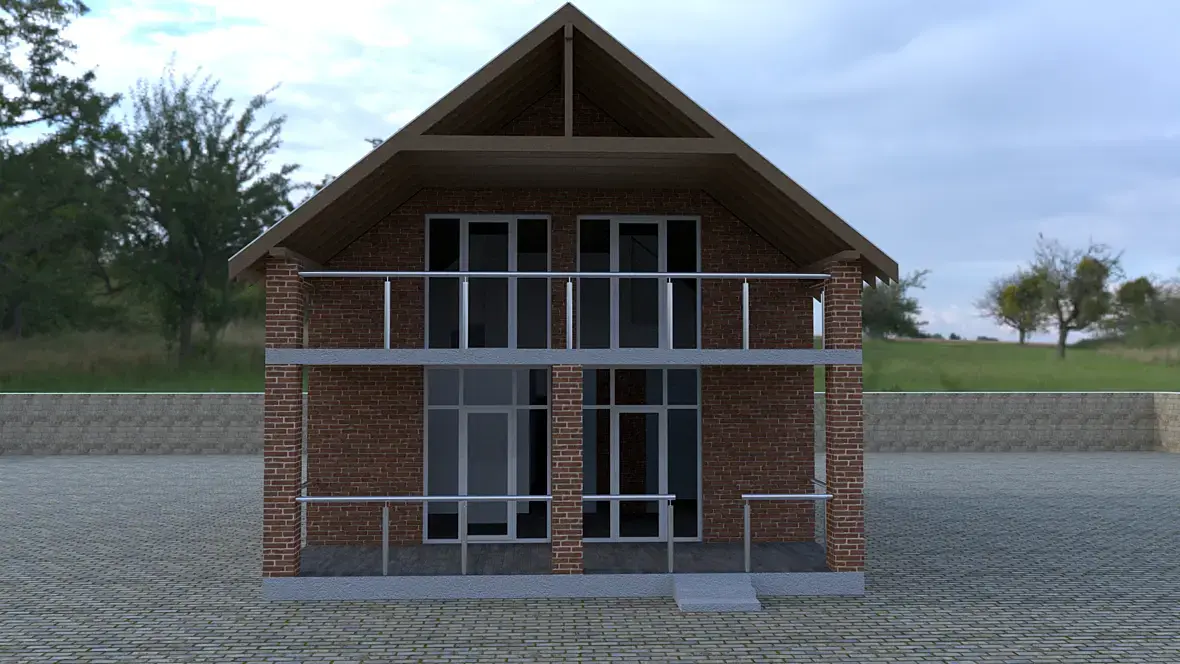коль занимаешься проектированием, то уж всё сделай. Водостоки всякие, коньки, трубы там. А то не дом, а амбар какойто. Ну и окружение. поставь ламборгини не дорогую, всякий хлам там накидай . А то плиткой замостырить любой мэр может.