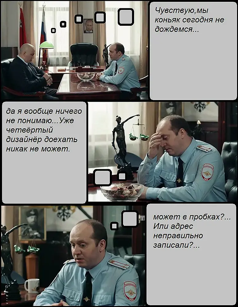 Позвонил мне буквально час назад Андрей Сергеевич, зам главы ГИБДД. Тараторил, слово вставить не давал, говорит скоро на пенсию, год за два - все дела, хоть и гос.служба - оплатить ему все помогут его спонсоры, девочек-дизайнеров не хочу барть, они все делают рюшечки и бантики, а я 3 дня из 7 сплю в кабинете
