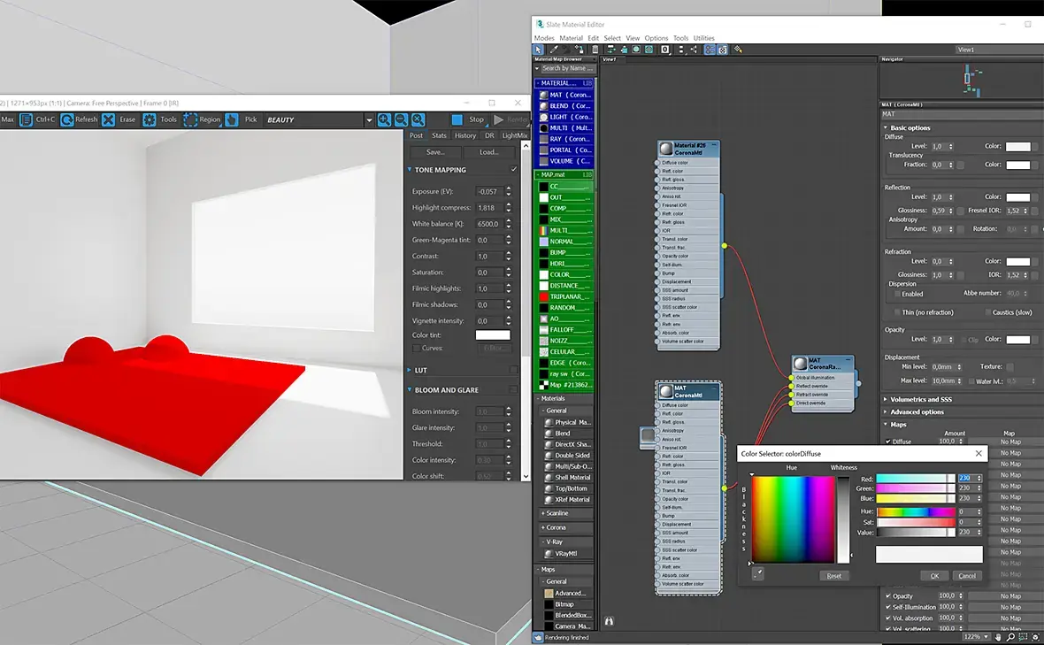 В общем, инструменты для этого есть, какие кому использовать, решает каждый сам. Не надо уходить от Ray Switch, кто хочет может сразу же делать в Максе всё, кто-то в шопе позже над цветом работает. Я, например, использую Render Elements, и при постобработке всё довожу уже, как надо. Без танцев с бубном нужна та самая желанная кнопка, о которой ходят легенды.