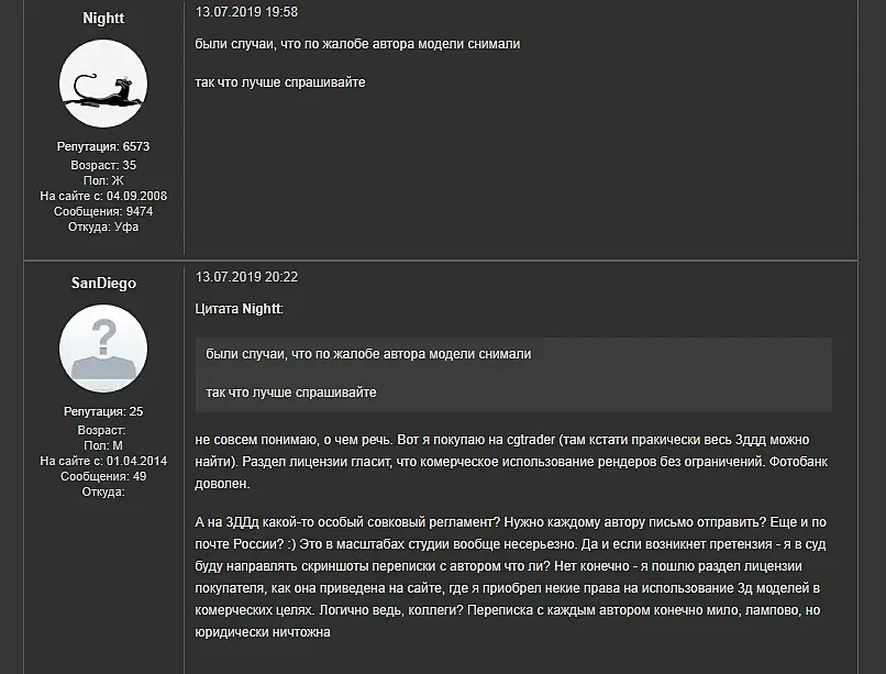 Мутнось правил будет играть мне на руку в случае суда. Все таки я автор три д модели, а не вы.