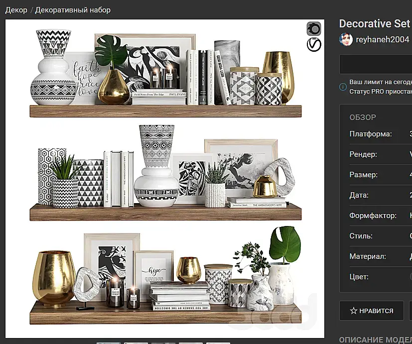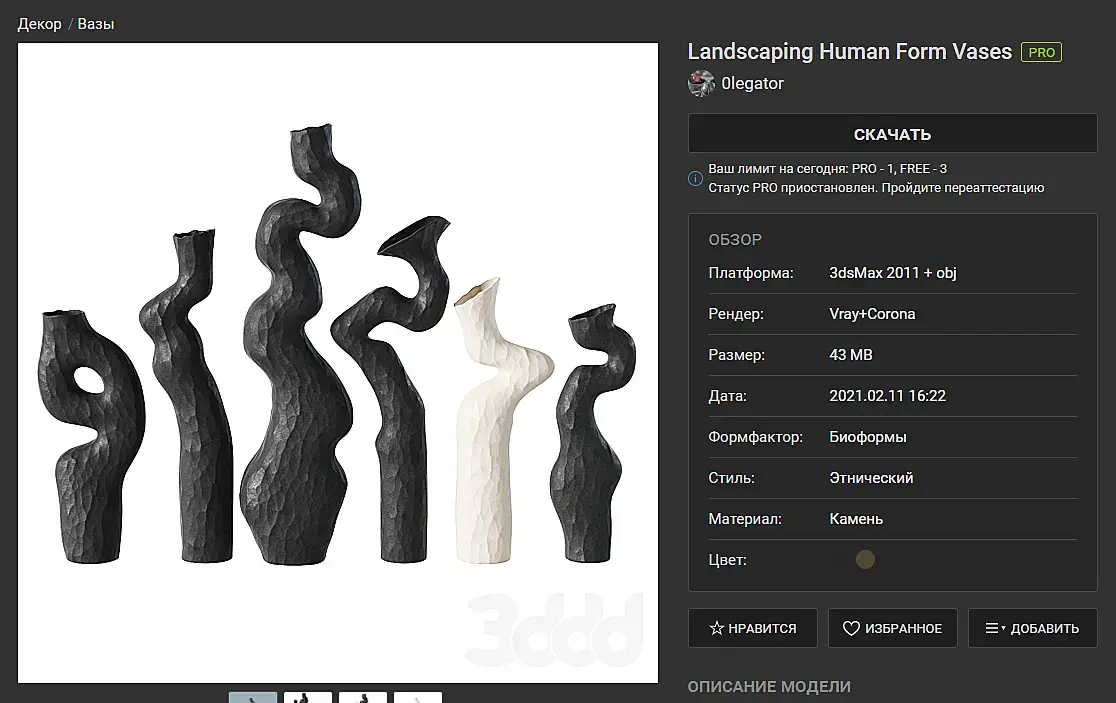 Все просто. В разделе "Вазы" могут быть только вазы и до 5 штук в наборе. (мне в свое время нещадно мозг вынесли на этот счет), а вот вторая картинка - это уже декоративный набор, тут можно декор из небоскреба целого выложить - это норм.Так вот, в "вазах" должны быть только вазы и только 5 штук. А если туда всунуть ветку или листик - это уже не может быть в вазах, но и за декоративный набор не прокатит, у меня не прокатило и веник из вазы меня заставили вытащить. В общем, никакой личной неприязни к автору, тут все вопросы к модератору, который пропустил 6 моделей в сет. Правила должны работать для всех без исключений.Спасибо.
