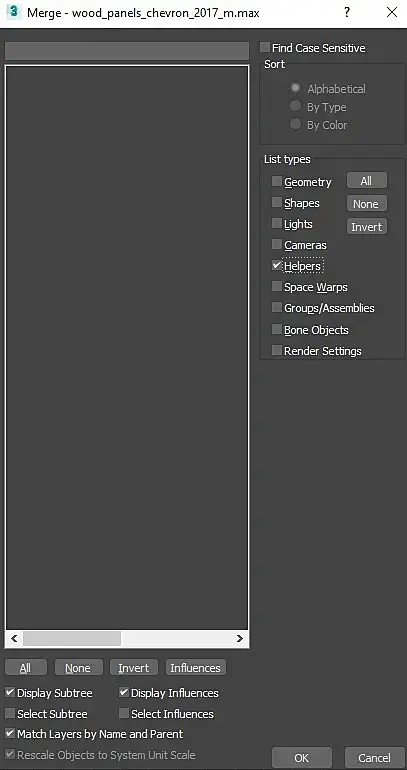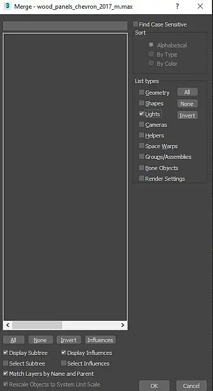Источников освещения в сцене не было. Хелперы искала разными способами, и через Invert Select, и через анхайд, и через фильтр на выделение итп. Не нашла. В том числе попробовала способ, найденный на форуме, где говорится, что через Merge можно увидеть даже те хелперы, которые в самой сцене не отображаются. Прикладываю два скрина с окном Merge, где видно, что нет ни хелперов, ни света.