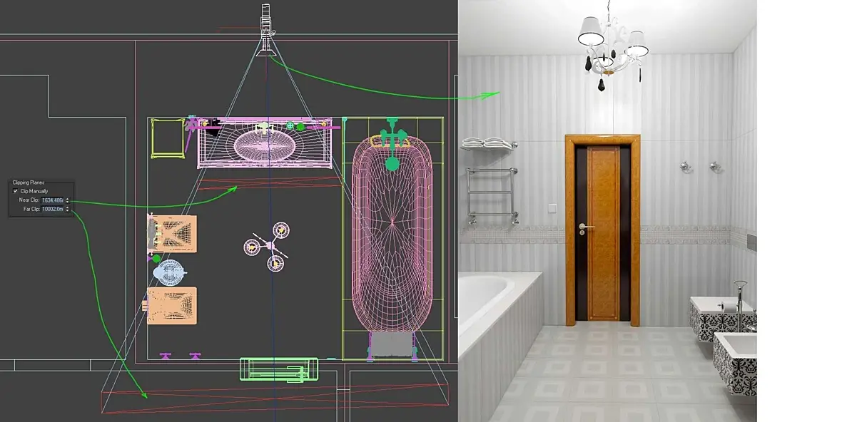 А как правильно клиппинг сделать тогда? я сколько не искал, не дает он ванну не обрезать... можно ток в настройке камеры вообще ванну не рендерить.