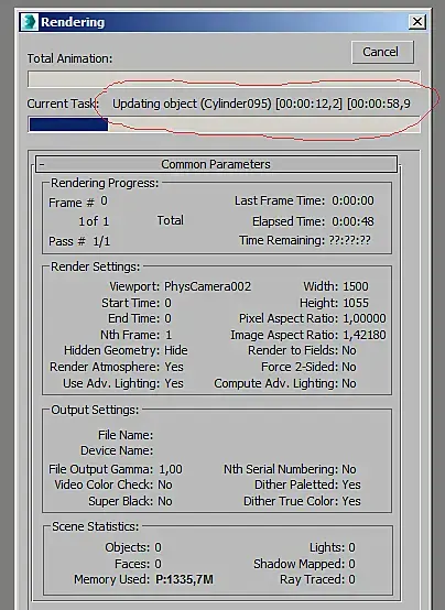 тоесть если на феноме картинка считается 40 минут то она сразу начинается с построения света , а тут было в разы быстрее а теперь минут 10 может занимать вот это "обновление" объектов  и так каждый раз даже если я ничего не двигал в сцене а просто снова нажал кнопку Рендер