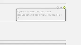 Вопрос к модераторам, активность/ репутация. Был лимит на то что бы 1 конкретному человеку от другого конкретного пользователя, больше 2 + в сутки не поставить. Сейчас, пыталась поставить и вот высвечивает такое, не в первый раз в целом за последние пару месяцев. Но, я не ставила плюсов и вообще ничего, несколько дней, никому, и автору комментария тем более. Сейчас лимит на активность плюсов, от любых пользователей 1 человеку в сутки не долее 2-х на весь сайт?