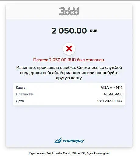 Добрый день! не проходит оплата за модели, перепробовала все указанные на странице способы, каждый раз выдает ошибку. пробовала несколько карт от разных банков (РНКБ и Тинькофф)