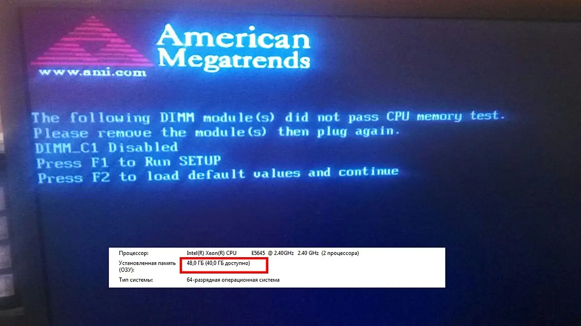 Мать ASUS Z8NA-D6 шесть плашек по 8 гб Kingston KVR1333D3Q8R9S/8G (плашки местами менял, не помогло)