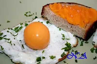 Хуже яичницы с разбитым желтком нет ничего. Это провал. Идеально если желток жидкий, но белок при этом на нём не сопливый. Минуту-две под стеклянной крышкой подержать и как только на склоне желтка начинает белеть, сразу снимаем.