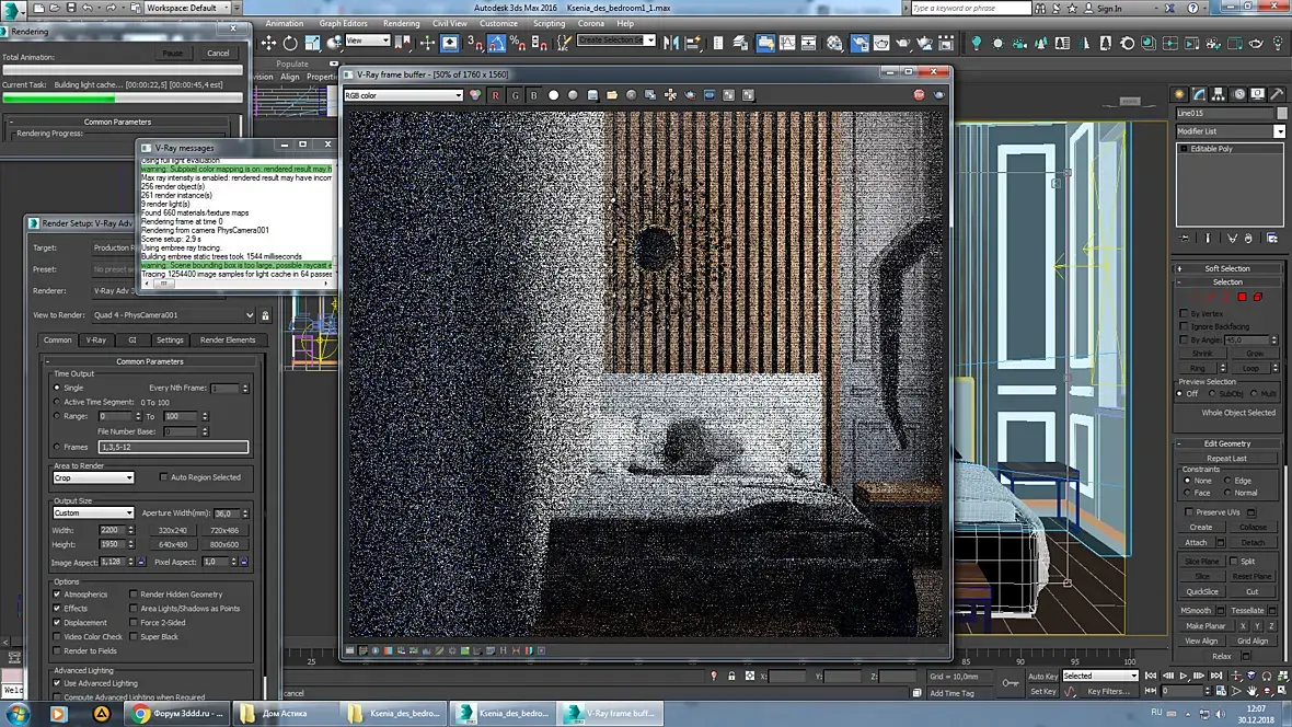 Скачал сцену . Вставил туда свою , во время рендера появляется какая-то разделительная полоса . Помогите кто может