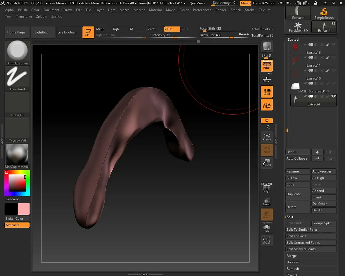 Привет всем. Опять у меня проблемы с ровными плоскостями) Разделил наплеч на несколько сабтулов и вот собственно проблемка возникла. Область слева замаскирована. Как я могу выровнять плоскость справа строго по вертикальной оси или по уровню маски? Кисти выравнивания углубляют все да и толком не выравнивают.